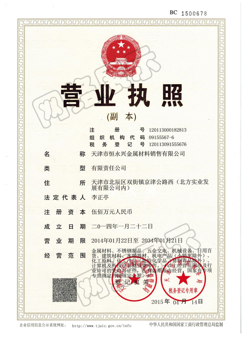 天津市恒永興金屬材料銷售有限公司